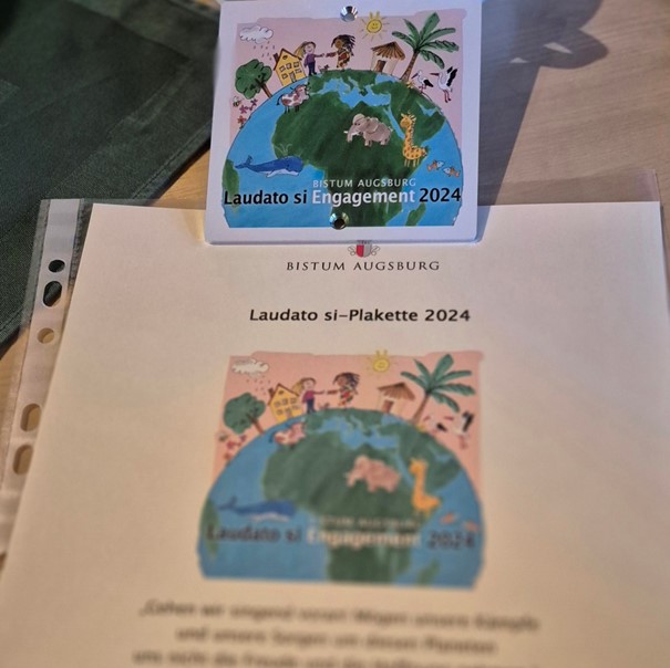 Seit zwei Jahren würdigt das Bistum Augsburg mit dieser besonderen Plakette Engagements, die den Werten der Enzyklika Laudato si von Papst Franziskus entsprechen. Mit der Auszeichnung in der Kategorie „Resilienz und Stärkung der Gemeinschaft“ wird unser langjähriger Einsatz für eine friedvollere Welt und die Stärkung der Gemeinschaft gewürdigt.